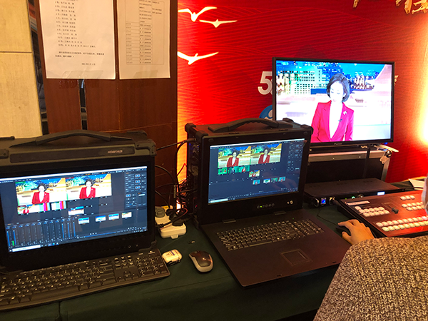 两会期间-河南广播电视台虚拟演播室在北京五环大酒店成功搭建完成。现场采用绿幕为背景,运用我司两台HDStar制播虚拟产品(一主一备两台)来进行本场两会的全程指导和直播管理,完成一场场的网上会议活动。